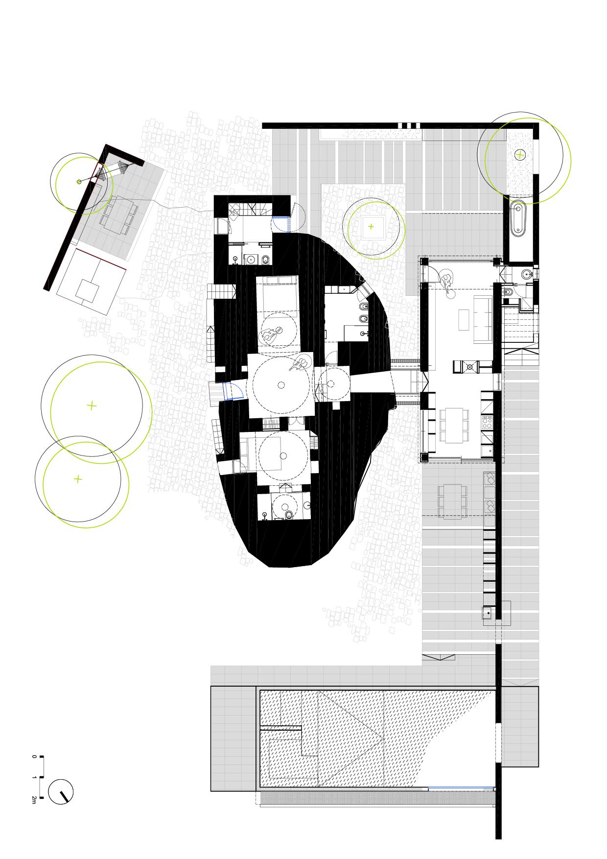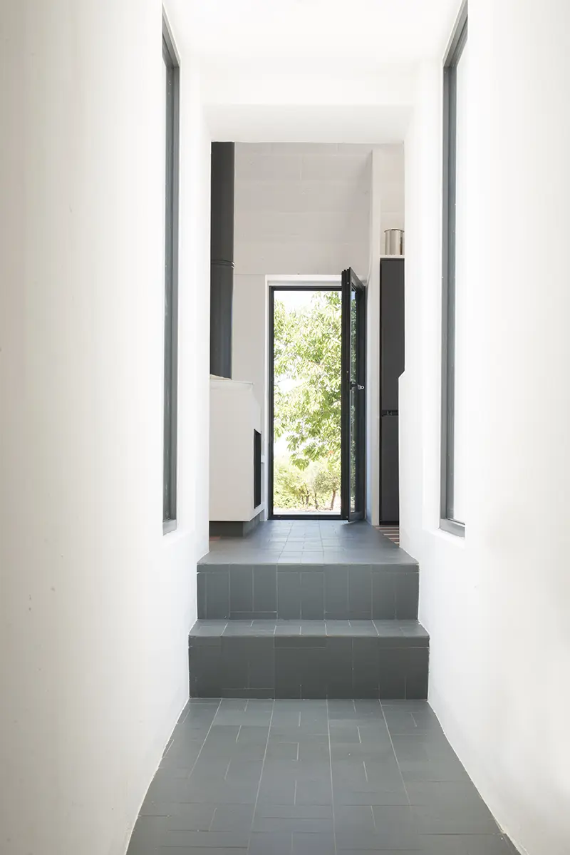 La realizzazione del corpo di nuova costruzione crea una nuova configurazione del sistema abitativo; nuovi spazi esterni raccolti, privati da cui, grazie e traiettorie visive, si possono ammirare pezzi di campagna.